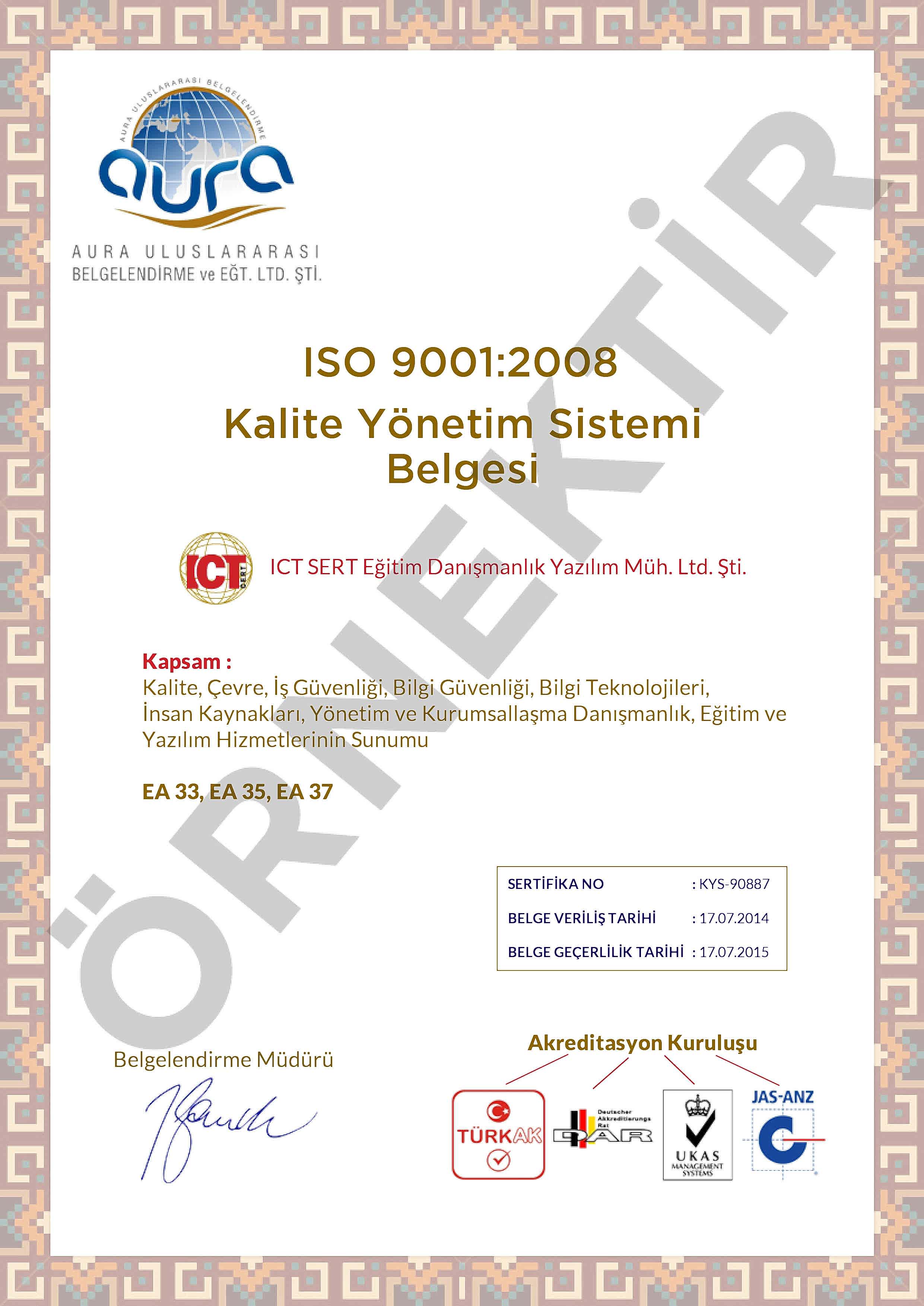 ISO 27001 Kalite Belgesi